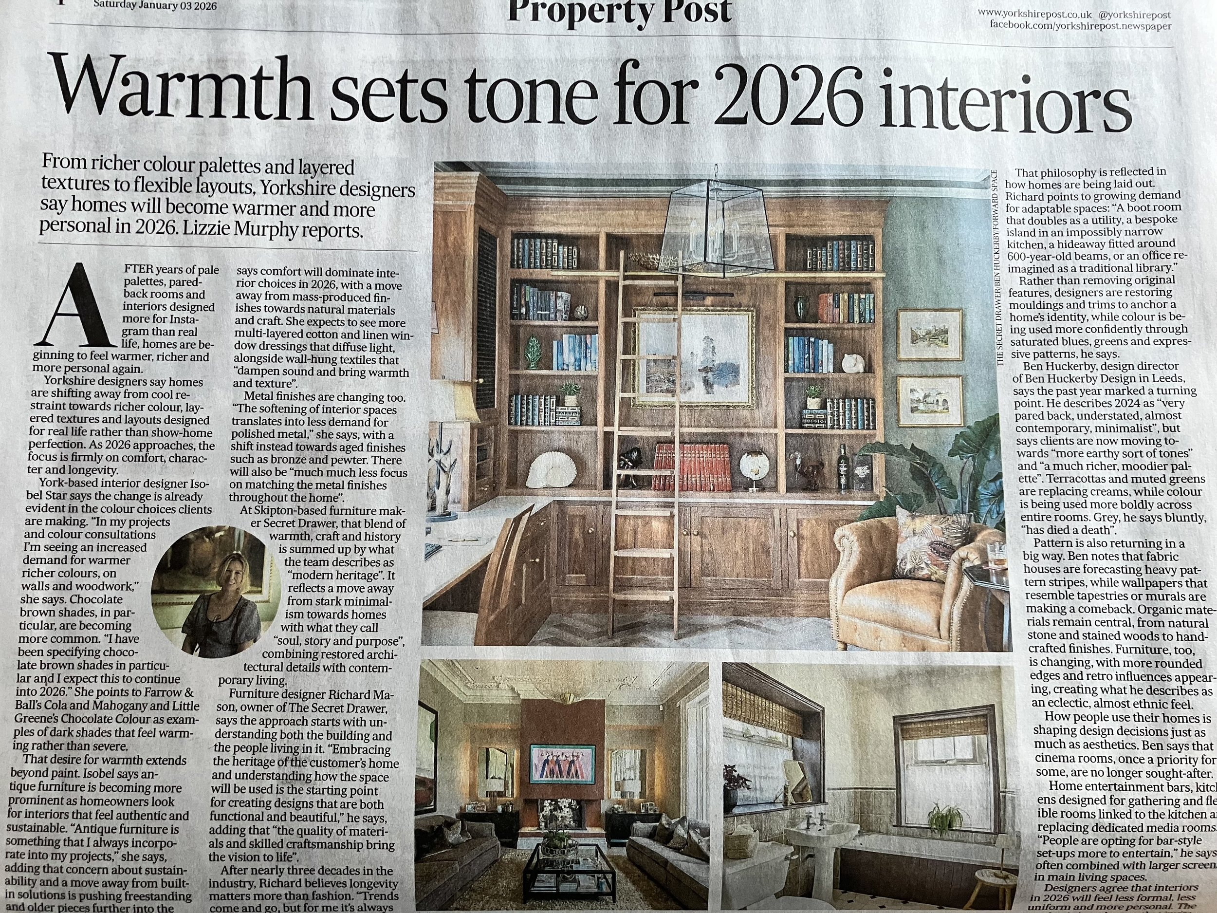 As the conversations around interiors evolve into 2026 the shift away from interiors that simply look good towards homes that feel grounded, personal and full of meaning continues. Homes with soul have always been at the heart of my work, so it was encouraging to see this conversation reflected in the Yorkshire Post property section this weekend, where the emphasis was firmly on how homes feel to live in, not simply how they look.